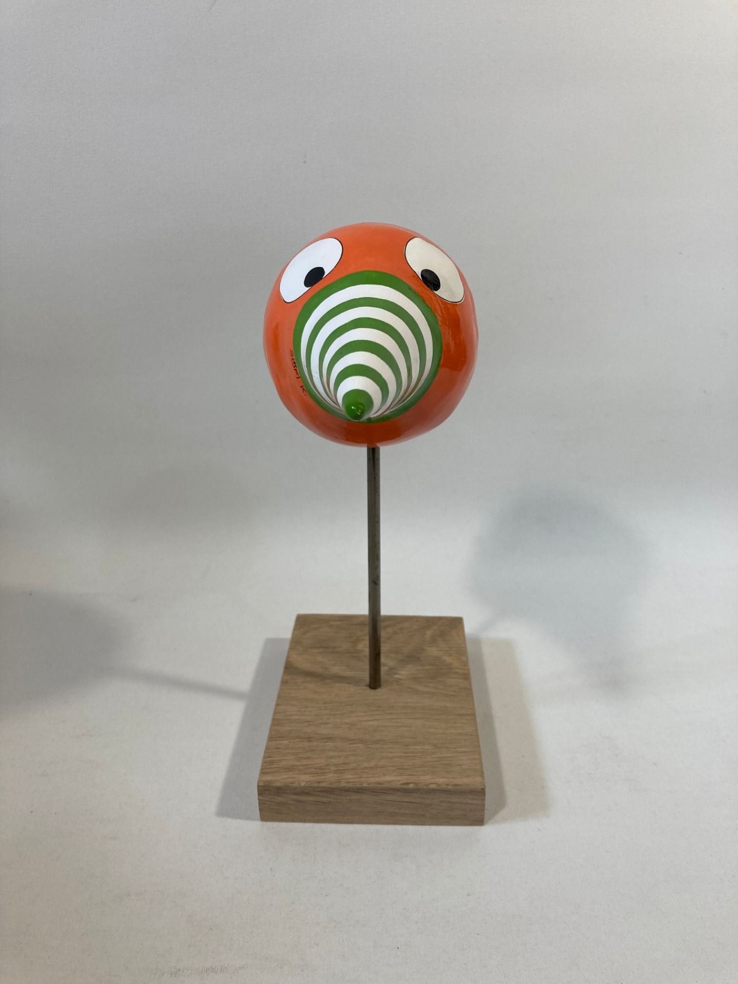 Montée sur une tige en acier fixée à un socle en chêne massif, cette créature en plâtre au long bec s’inspire librement de l’esprit des Shadoks : absurde, naïve et profondément humaine.