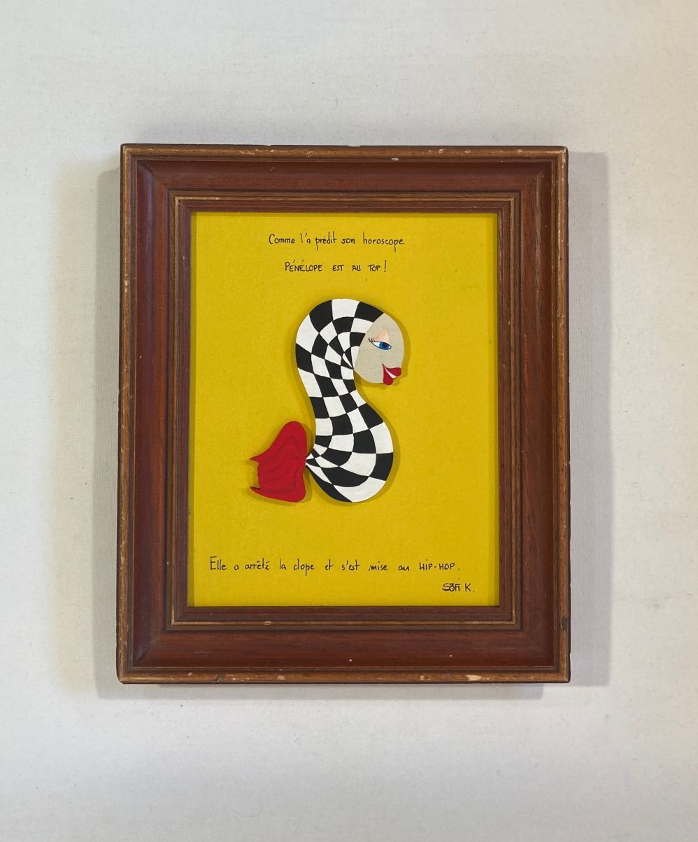 À la fois chic, drôle et inspirante, « Pénélope » est une œuvre qui attire le regard et fait sourire. Une pièce forte, où l’esthétique rencontre l’humour et l’affirmation de soi, dans la signature unique de Sofi K.
