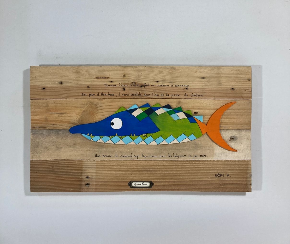 Avec ce poisson crocodile, Sofi K. explore l’univers des créatures hybrides avec humour et imagination.
