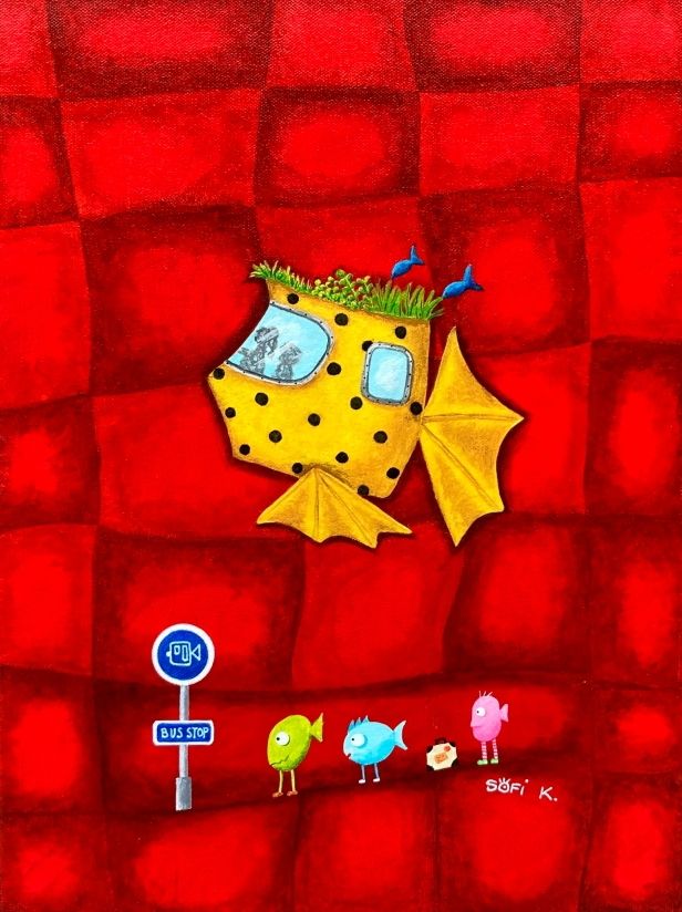 Fish Bus - original - pièce unique - Acrylique sur toile - 2024 - original - pièce unique - Tous droits réservés