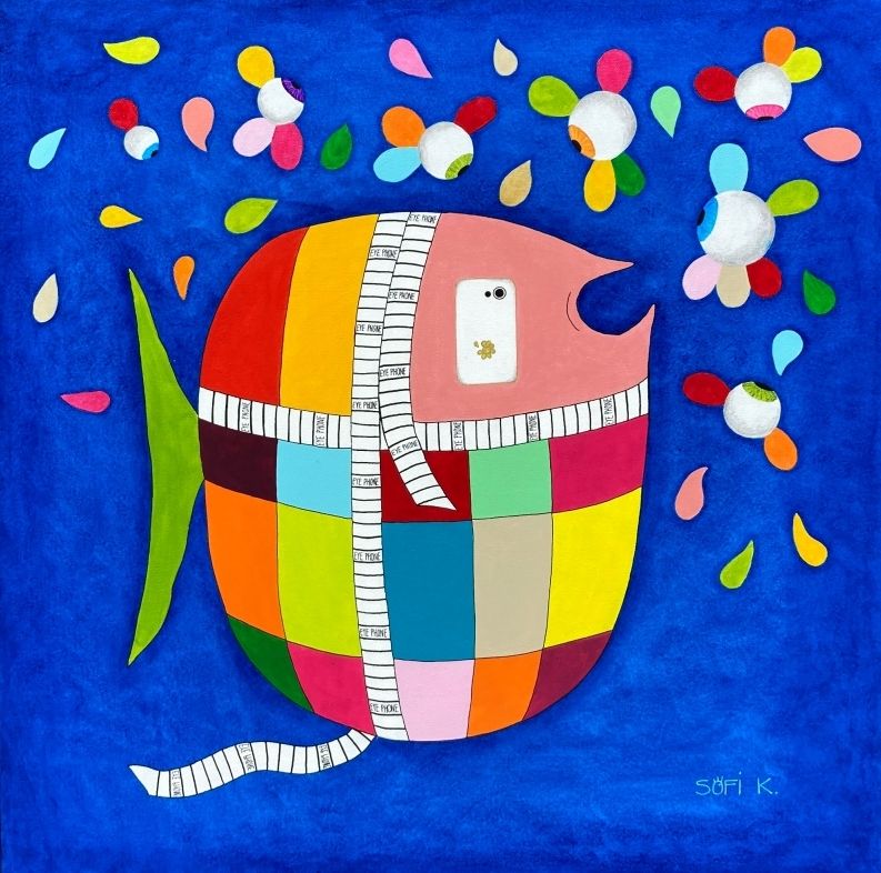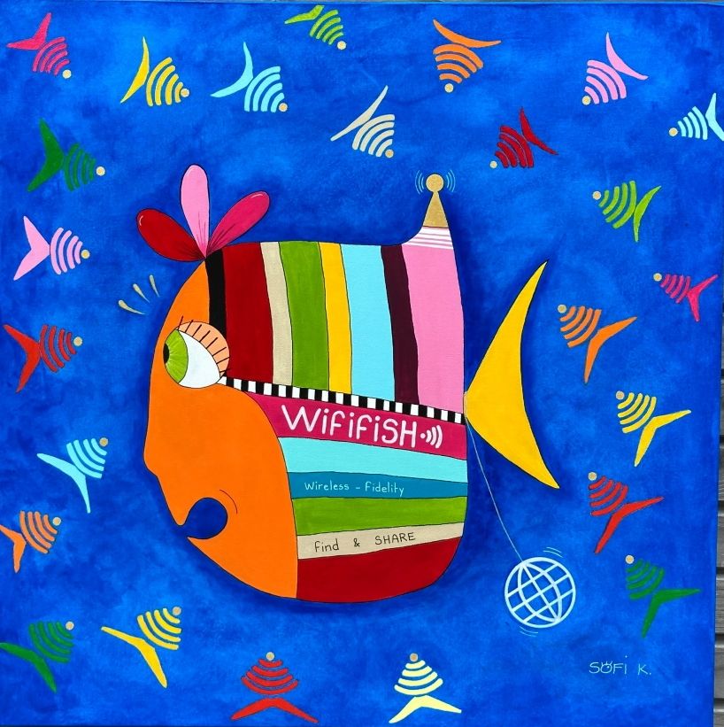 Wififish - original - pièce unique - Acrylique sur toile - 2026 - original - pièce unique - Tous droits réservés